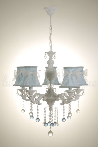 Mor güller ve lila gül yaprakları ile kaplı şapkaların aydınlattığı beyaz avize...